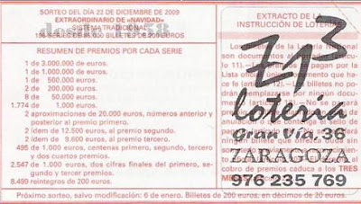 Puesto que la suerte es caprichosa podríamos resultar agraciados con un cuantioso premio (que podría cobrarse a través de una transferencia bancaria desde la propia administración, previa identificación con el listado que les facilitaré), o solamente con una pequeña cantidad que sería muy dificil de repartir entre tantísimos blogs como deseo que se beneficien.